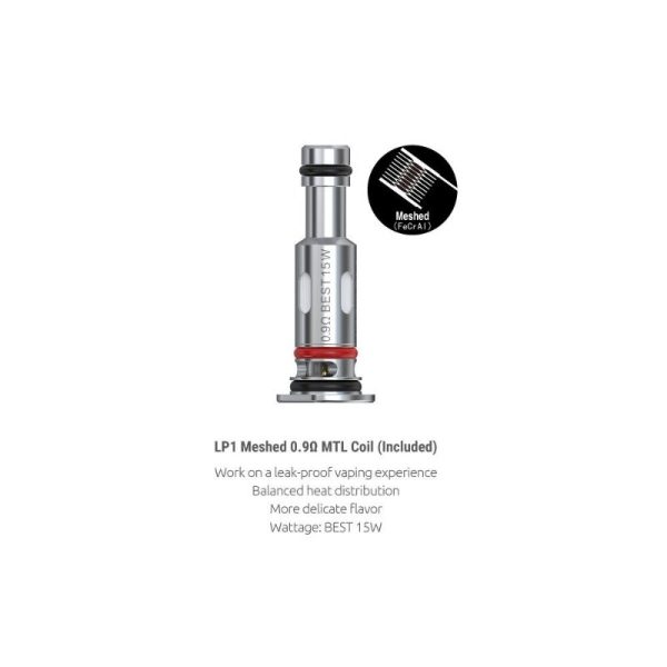 As bobinas da série LP1 têm: bobina LP1 malha 0,8 ohm, bobina LP1 DC 0,8 ohm MTL, bobina LP1 malha 1,2 ohm e LP1 Meshed 0.9ohm MTL.