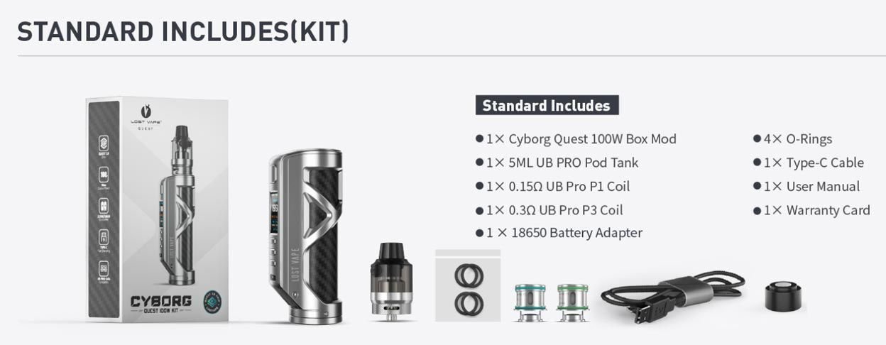 KIT VAPE CYBORG QUEST 100W C/ TANK UB PRO – LOST VAPE