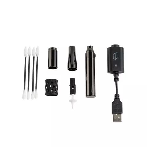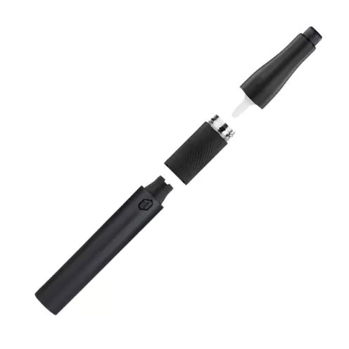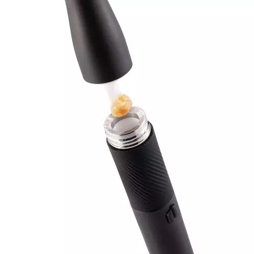 A boca do aparelho conta com uma ferramenta embutida retrátil, a chamada “dart” — feita de cerâmica com extremidade de silicone. Esse detalhe evita sujeira durante o carregamento dos concentrados, eliminando a necessidade de dab tools externas e tornando o processo prático e limpo.