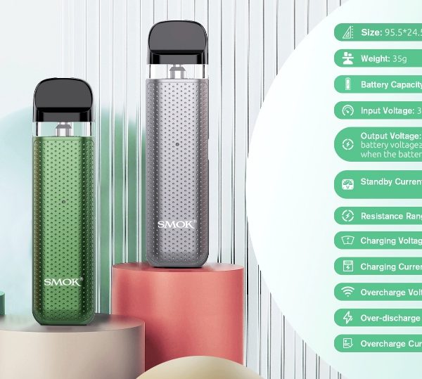 O kit Smok Novo 2C conta com uma bateria de 800mAh que pode durar o dia todo. O pod acompanha um cartucho Novo 2X meshed 0.8 mtl que é indicado com uso de juices nicsalt, porém o mesmo é compativel com a linha de cartuchos Smok Novo. O pod system tem acionamento por sucção, o mesmo não possui botões, basta plugar o cartucho e vaporar!